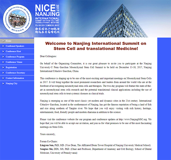 2017南京國際干細胞與轉換醫學峰會將于12月16日在南京高淳召開